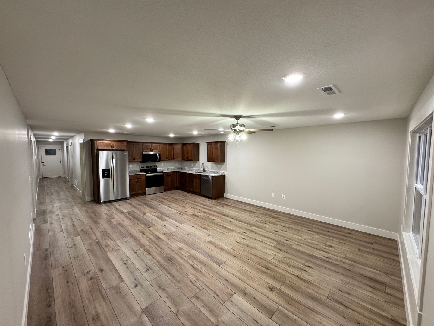 Open floor plan with modern finishes throughout