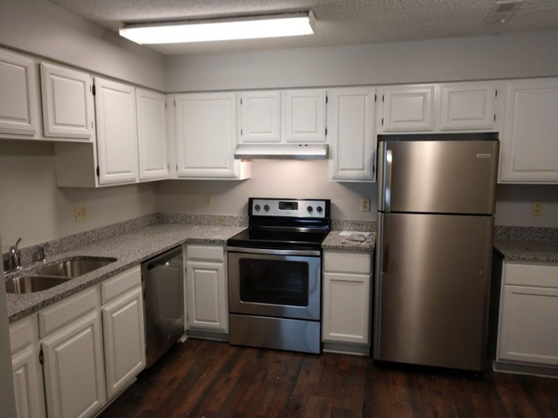 Updated kitchen featuring granite countertops and stainless steel appliances