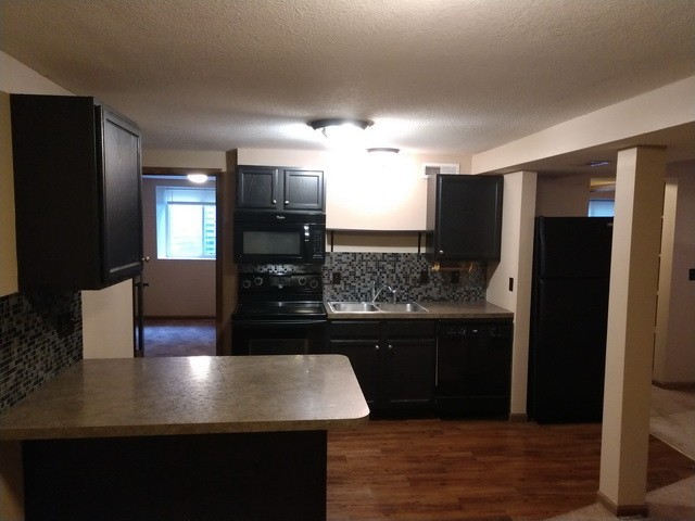 Kitchen Feature; All Black Appliances, Attractive Countertops, Stylish Mosaic Backsplash